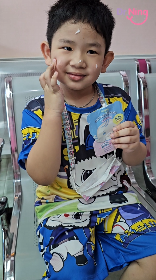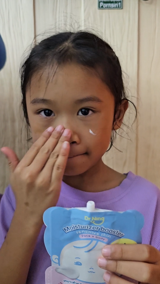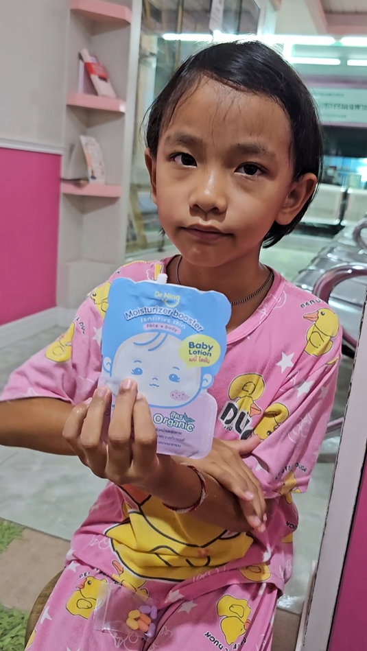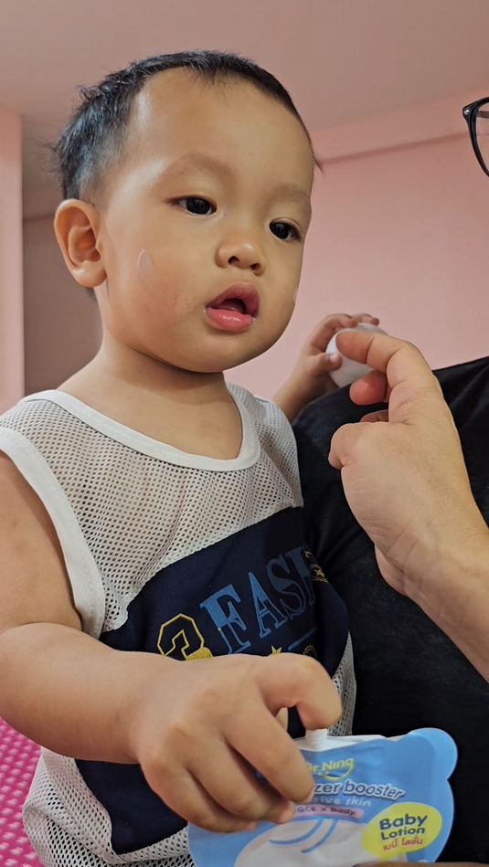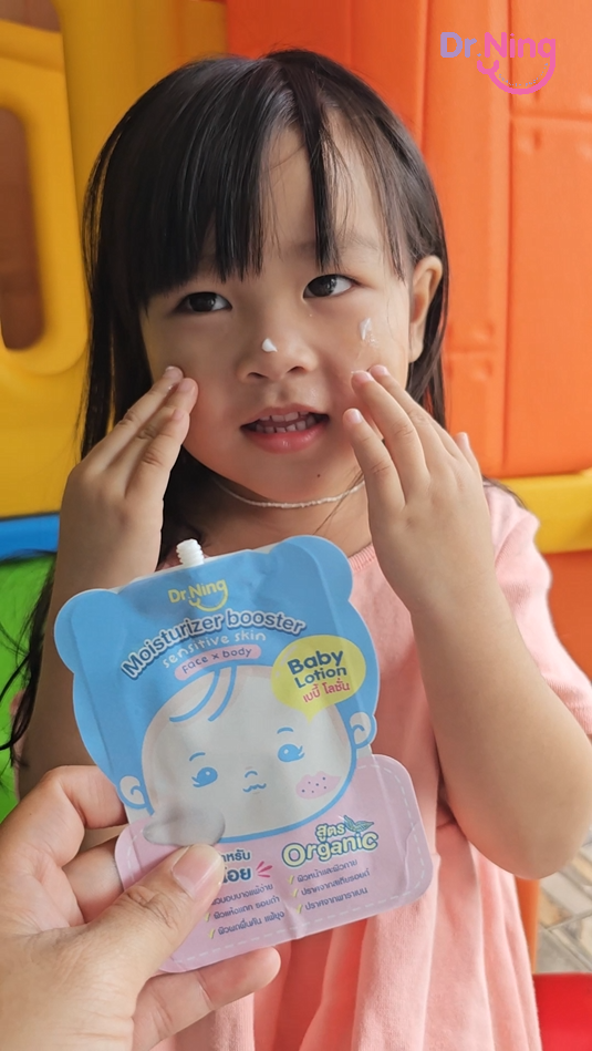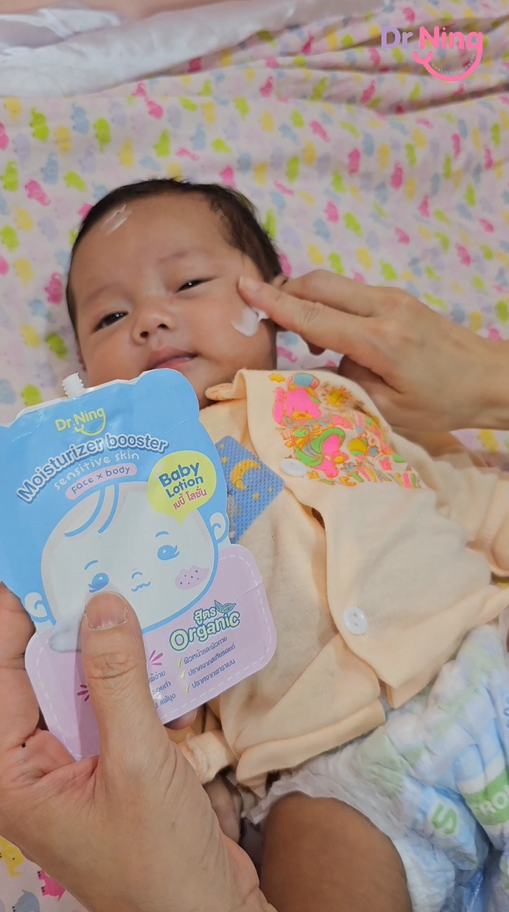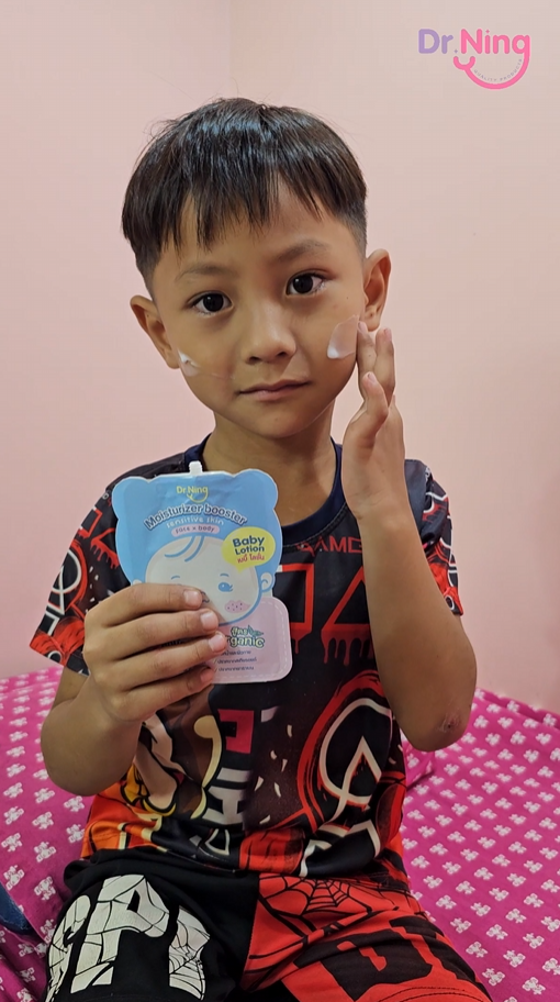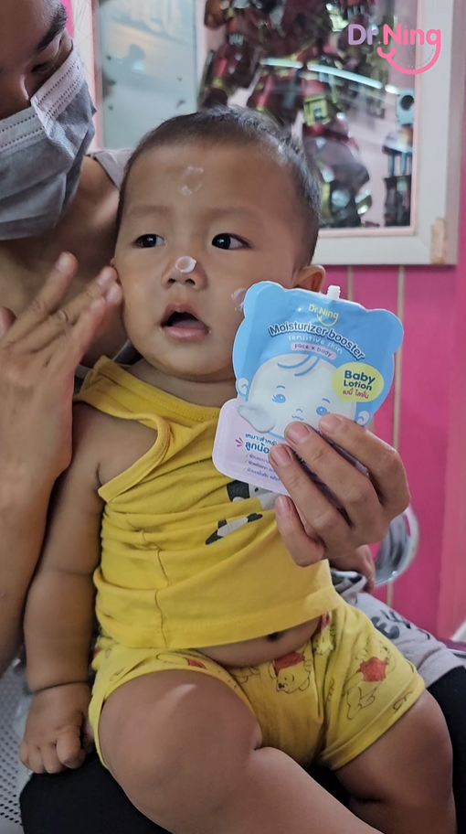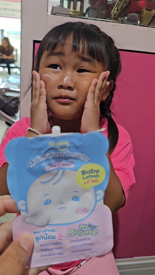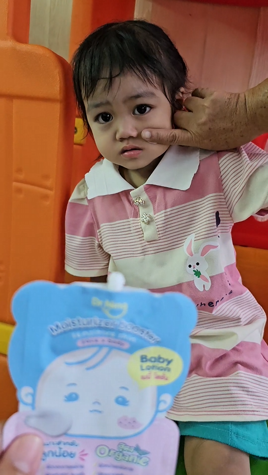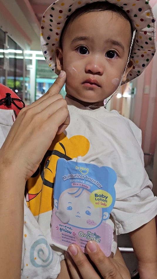 "หลังจากที่ได้ทาแล้วผิวของน้องนุ่มขึ้น ชุ่มชื้นขึ้นมาก เนื้อครีมทาง่ายนุ่มลื่นเวลาสัมผัส"