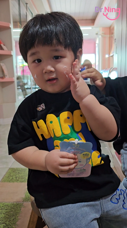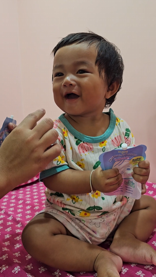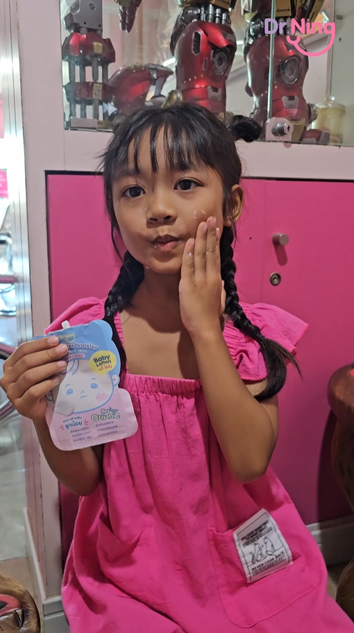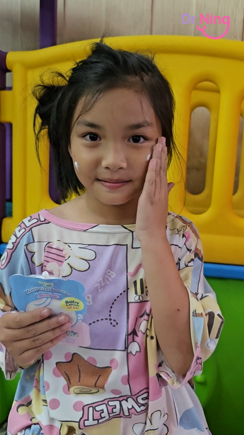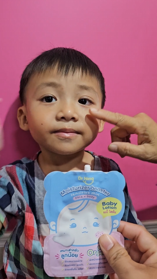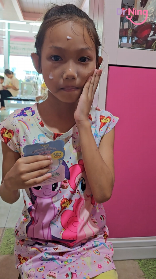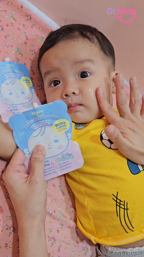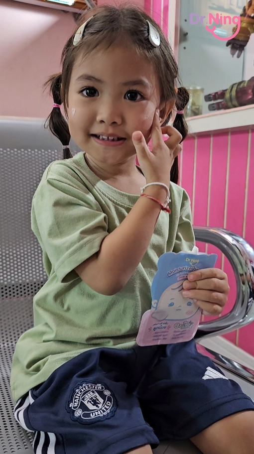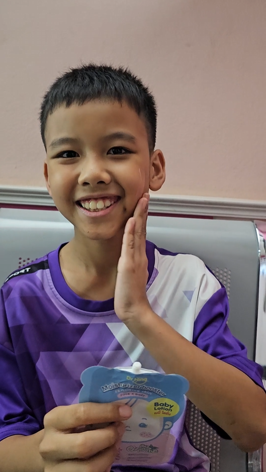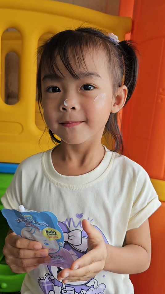 "หลังจากที่ได้ทาแล้วผิวของน้องนุ่มขึ้น ชุ่มชื้นขึ้นมาก เนื้อครีมทาง่ายนุ่มลื่นเวลาสัมผัส"
