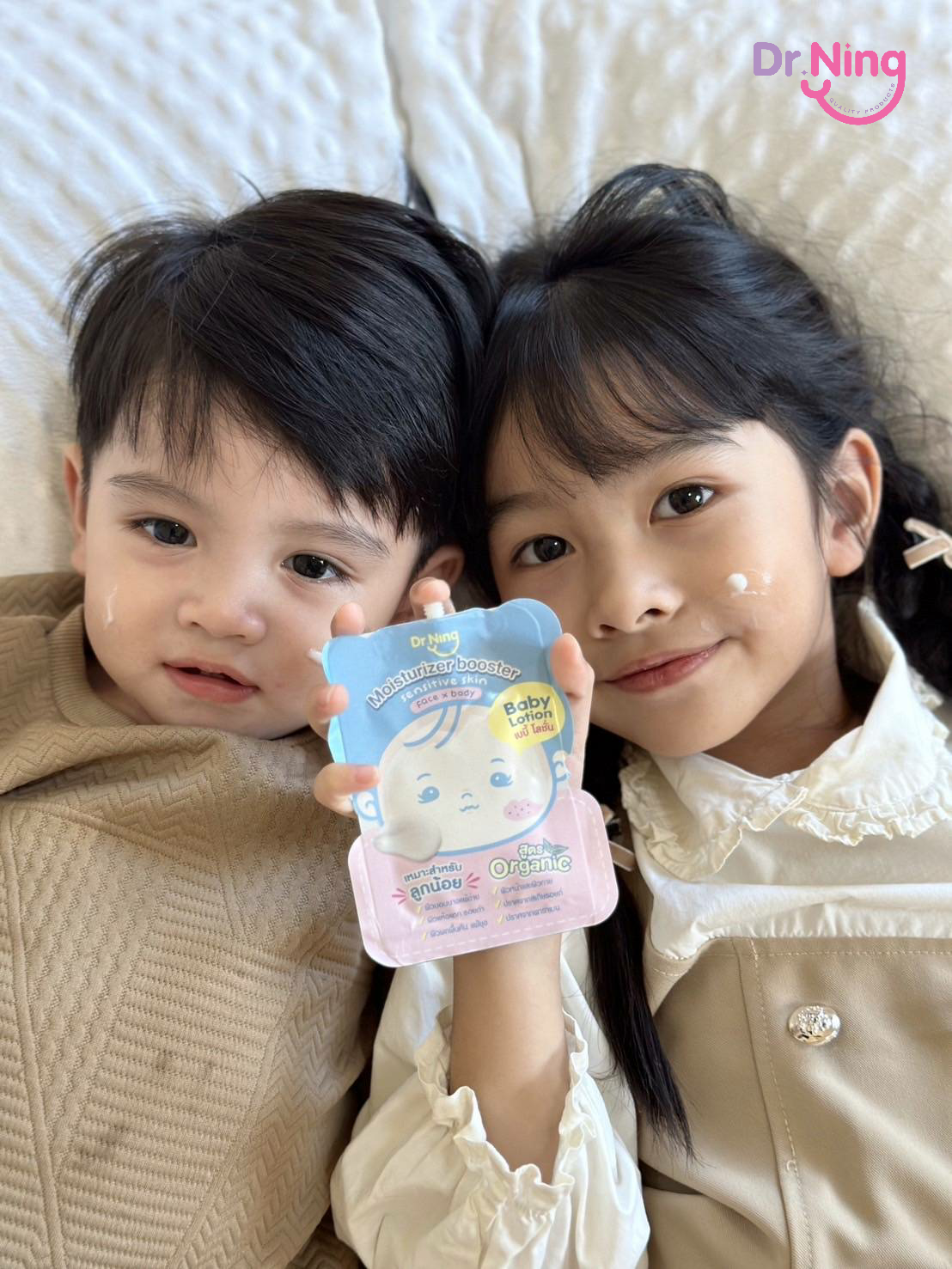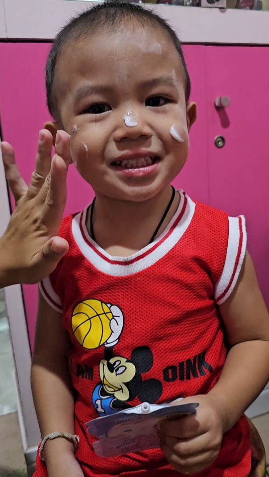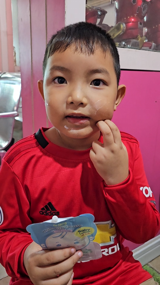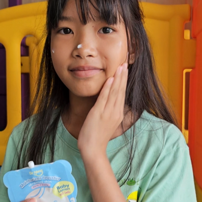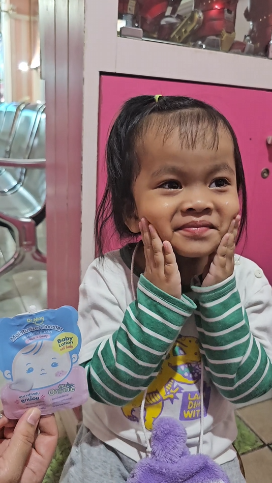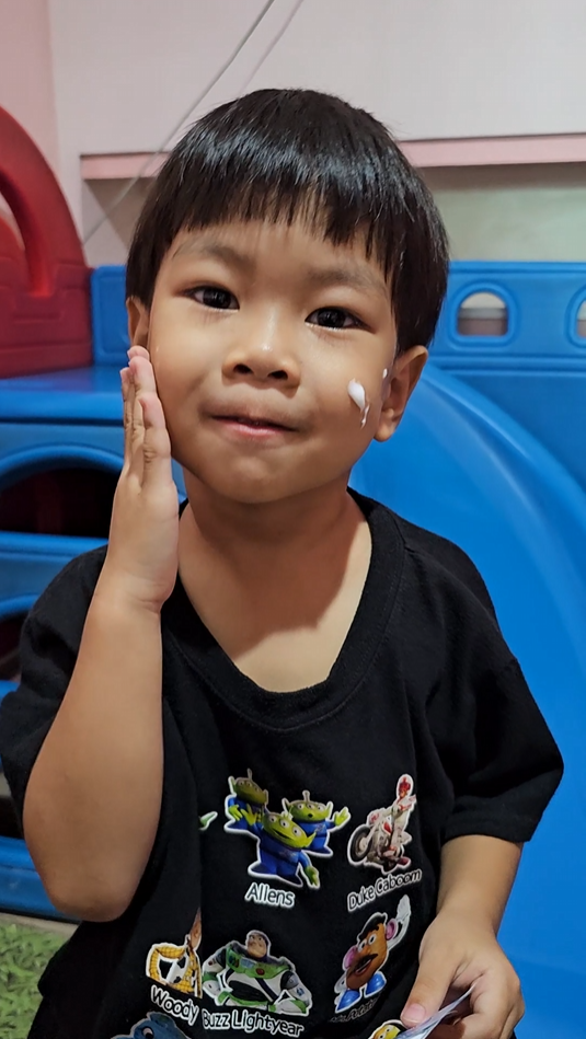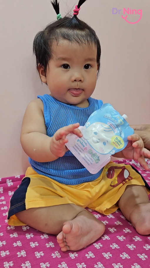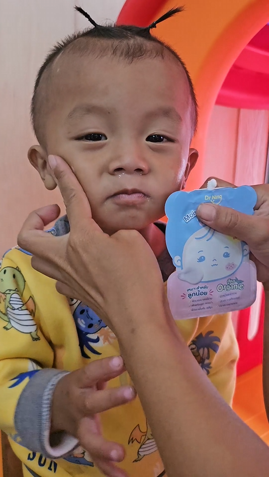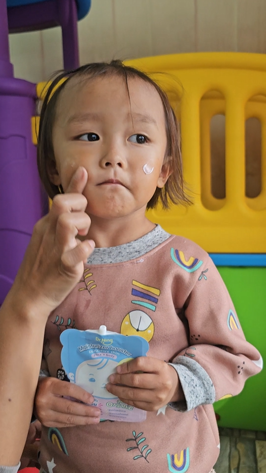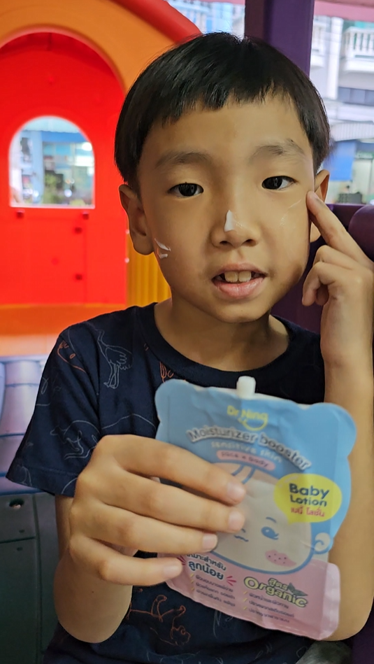 "หลังจากที่ได้ทาแล้วผิวของน้องนุ่มขึ้น ชุ่มชื้นขึ้นมาก เนื้อครีมทาง่ายนุ่มลื่นเวลาสัมผัส"