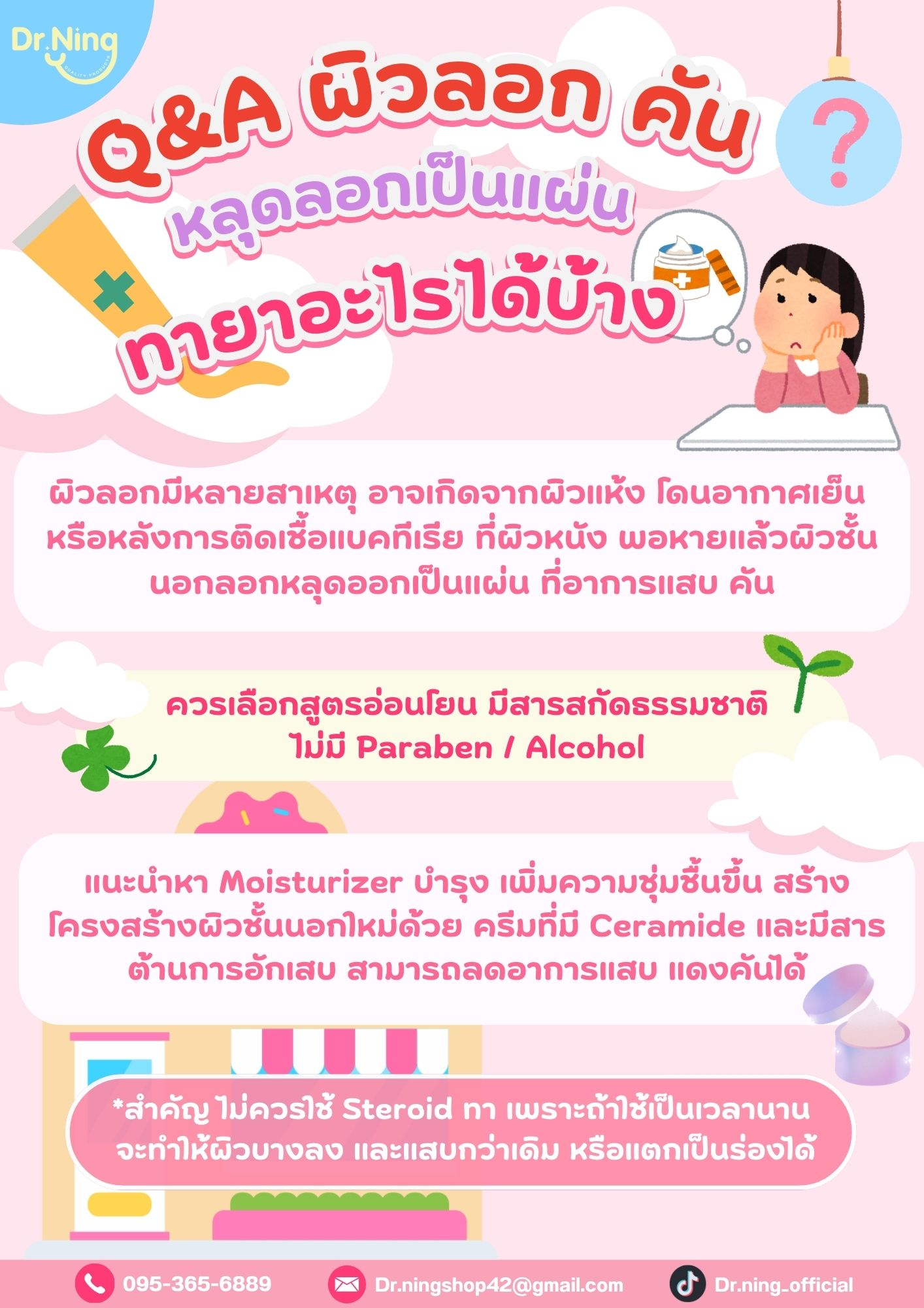 "แพรวมีอาการผิวแห้งเสียบ่อย หลังจากใช้ครีมของหมอหนิงแล้วผิวแลดูชุ่มชื้นอย่างเห็นได้ชัด"