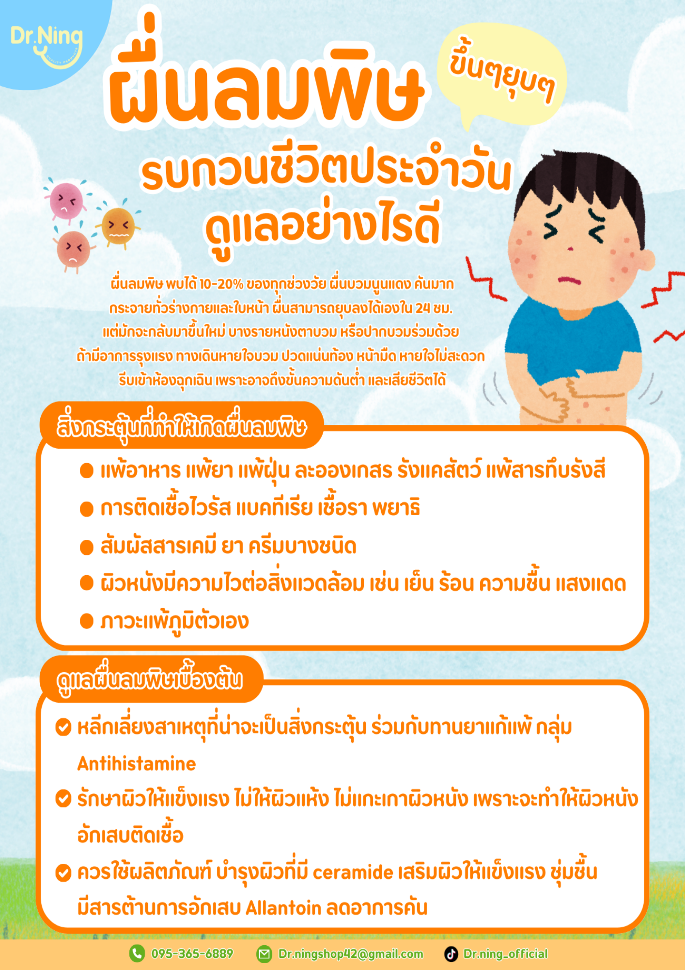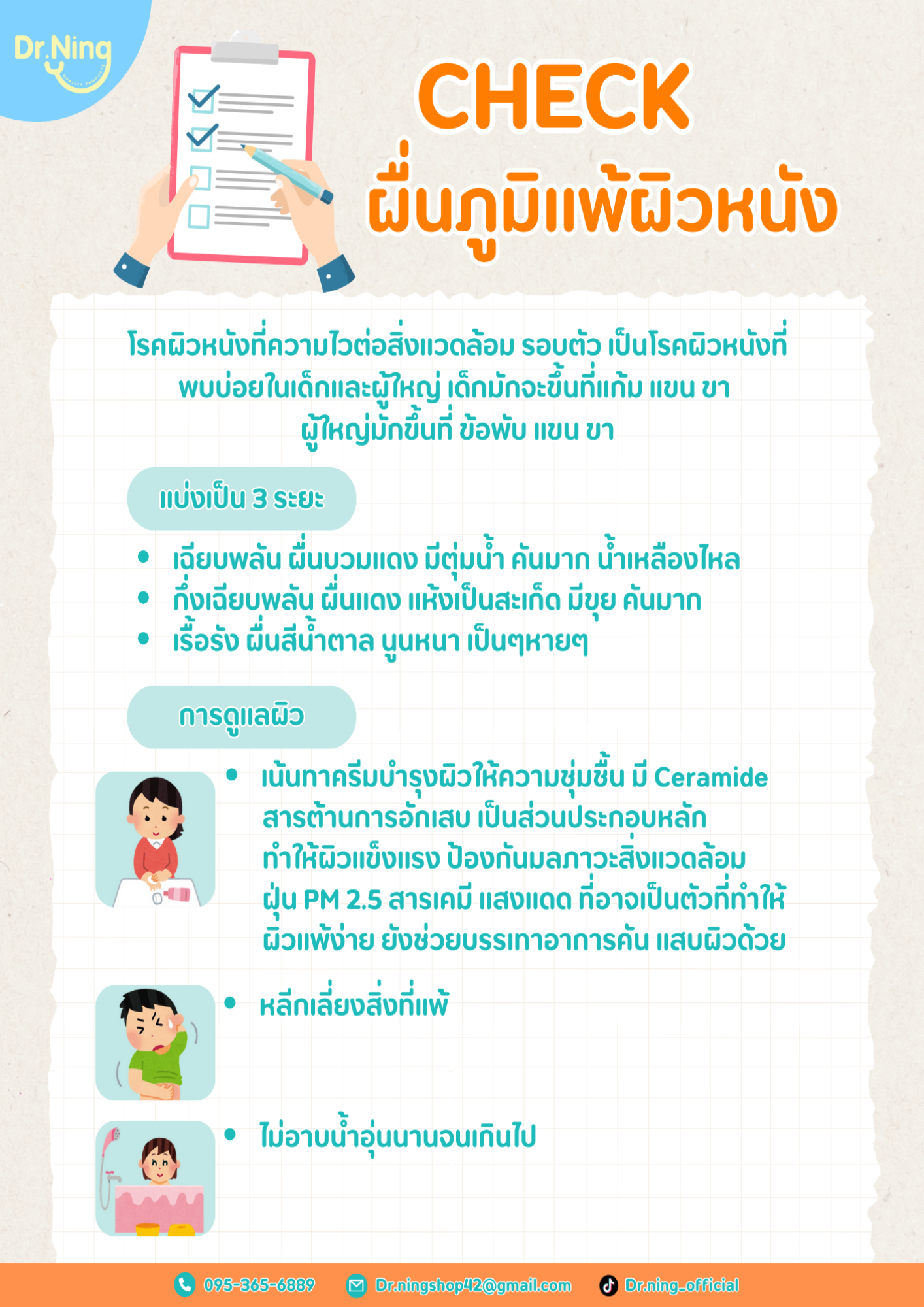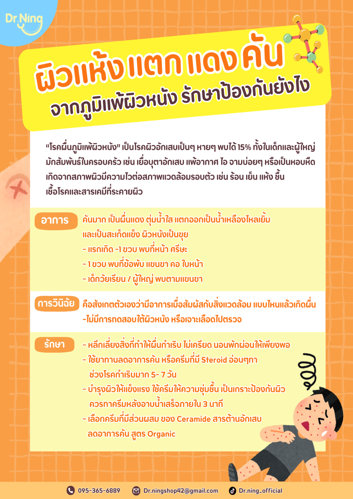 3 เดือน-2 ปี มาด้วยอาการผื่นภูมิแพ้ผิวหนัง ผิวแห้ง ลอก คัน