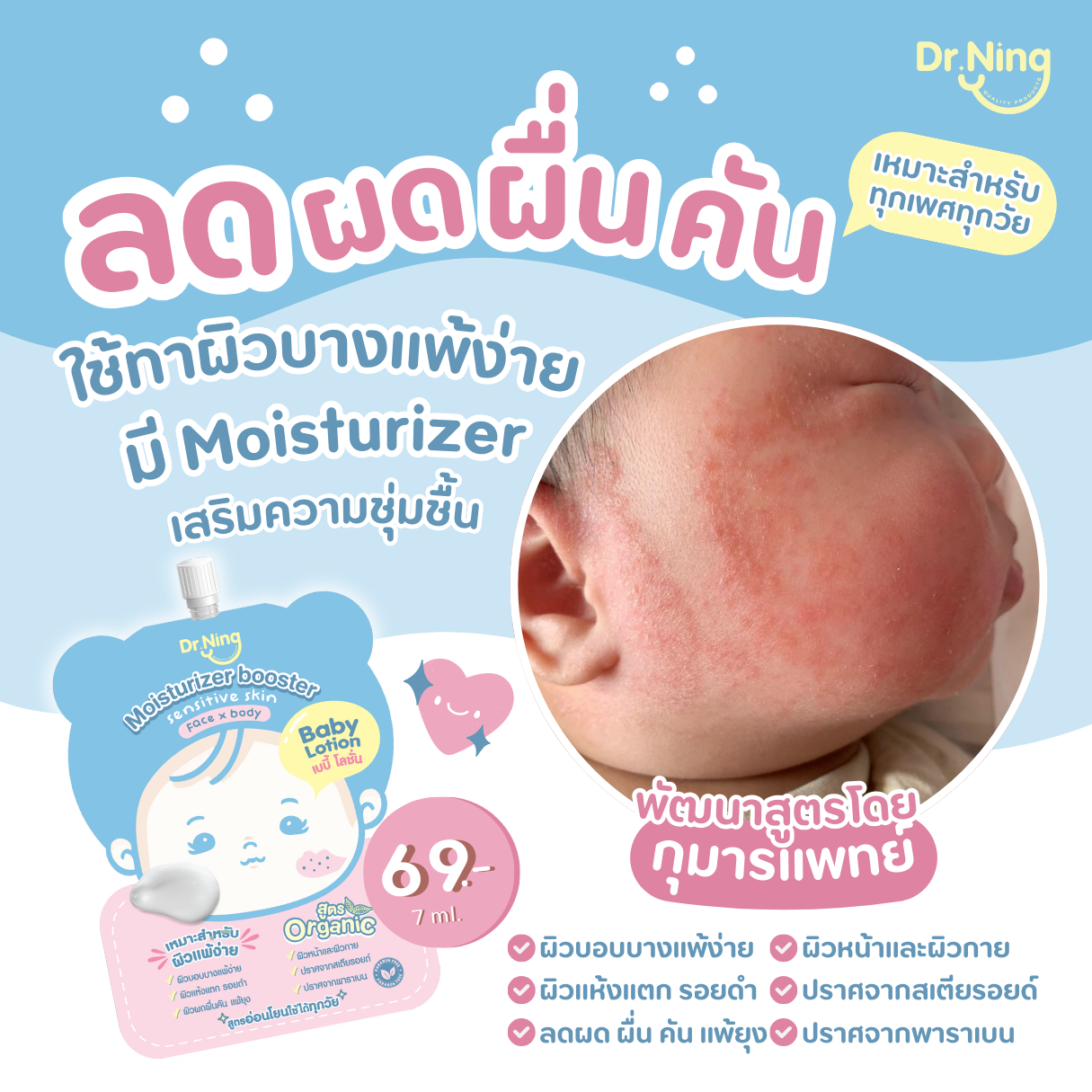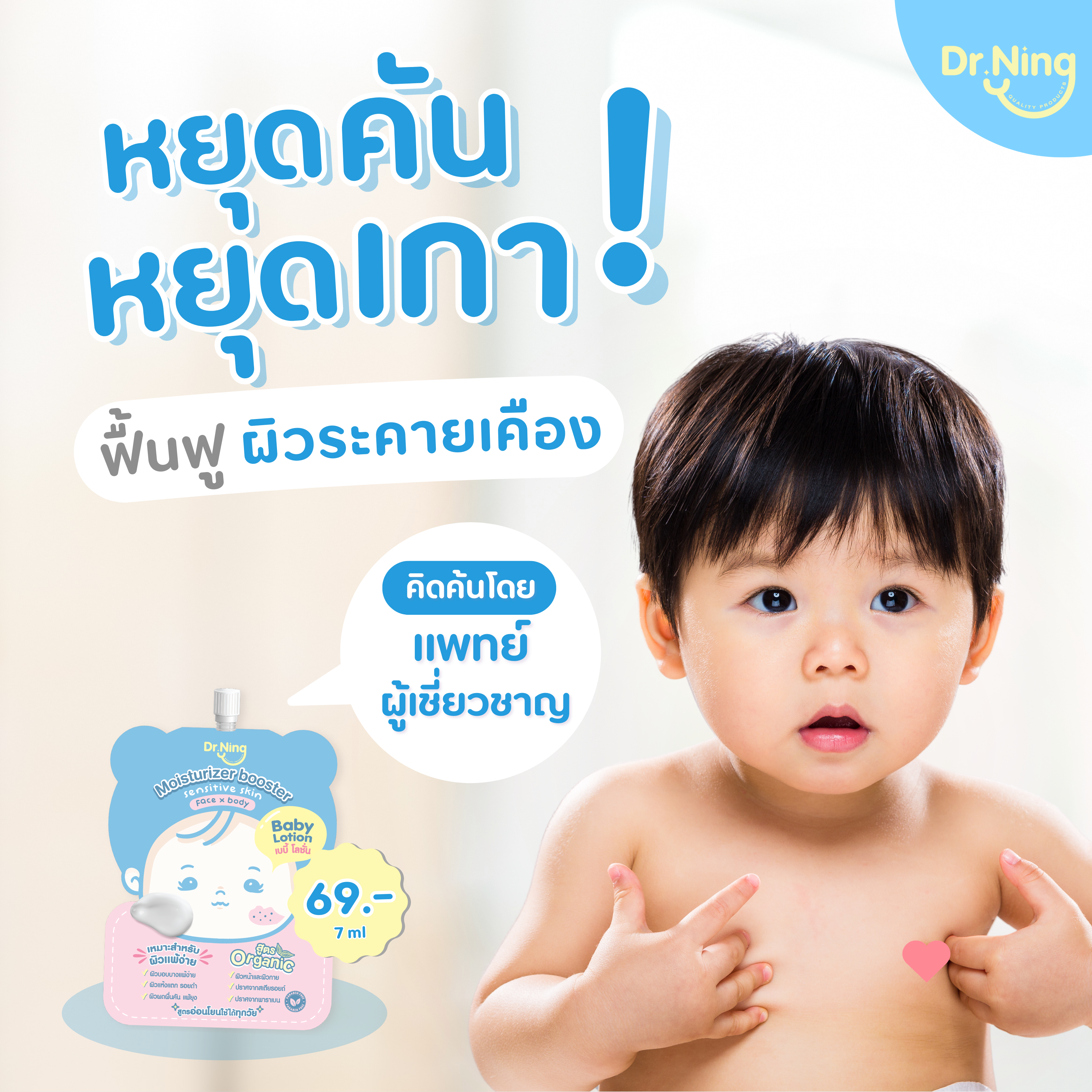 "ใช้ทาให้น้องตั้งแต่แรกเกิด เพราะมั่นใจในผลิตภัณฑ์ที่พัฒนาสูตรโดยคุณหมอ"