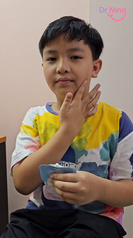 "เนื้อครีมเกลี่ยง่าย ให้สัมผัสที่นุ่ม น้องทาแล้วไม่ระคายผิว"